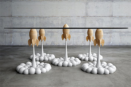 Стильный интерьерный столик будет отлично смотреться, как в пространстве дома, квартиры, так и в офисе. Придумал арт-объект дизайнер Стелиос Mousarris, как напоминание о достижениях человечества и, просто, для приятного чаепития.